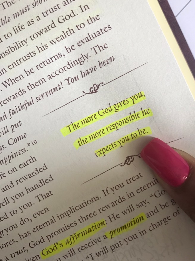 2. The more God gives to me, the more responsible he expects me to be. It’s like that saying, “To whom much is given, much is required.”