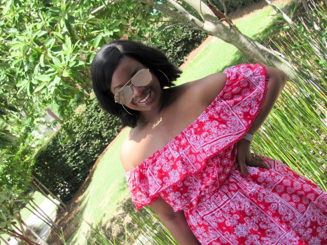 This dress is super comfy and definitely appropriate if you’re going for that backyard BBQ or fireworks show look for the holiday! The major plus for this look is, of course, it’s off the shoulder! I live for the OTS look! As most can assume, that’s my top fashion look!
