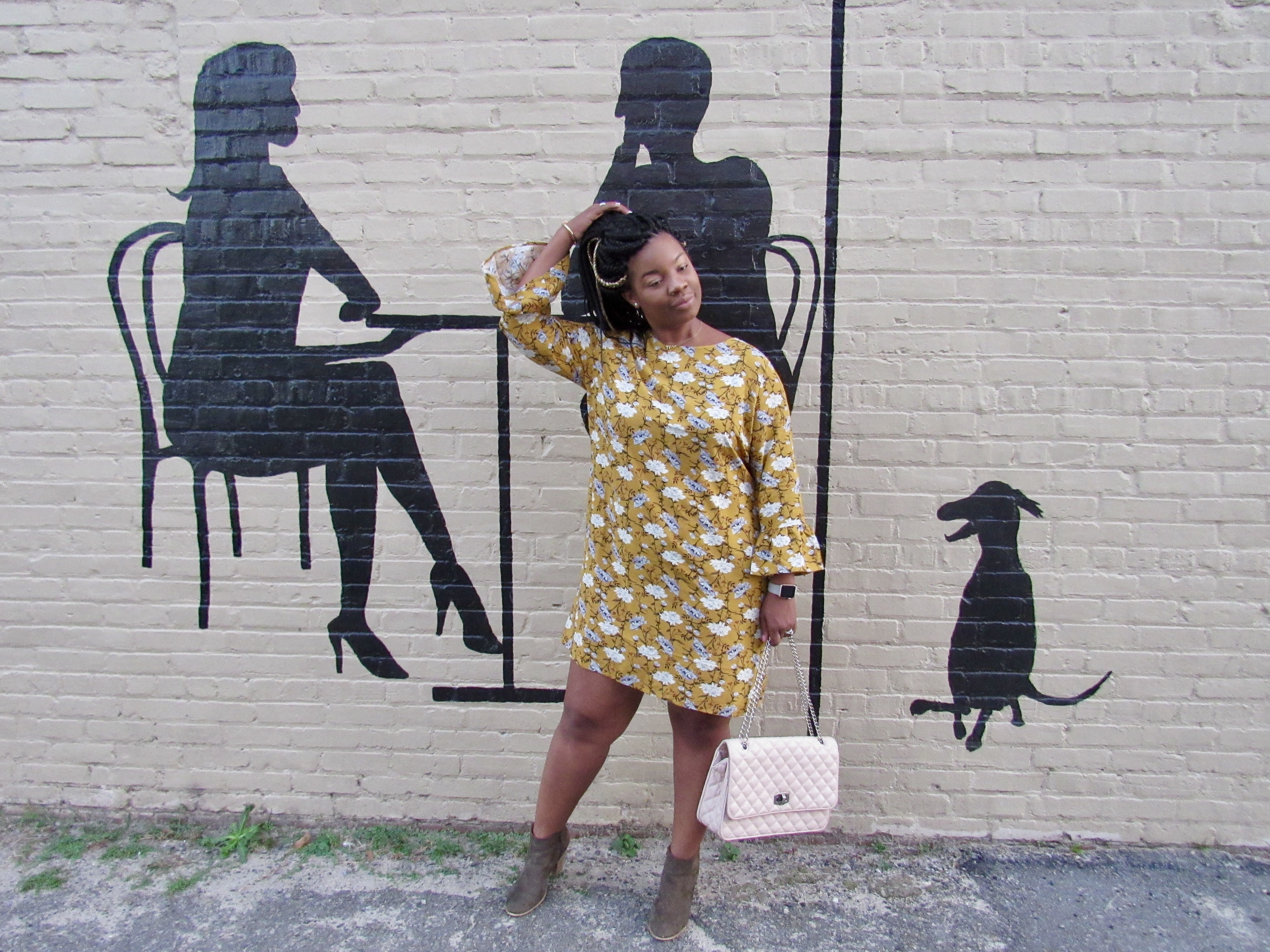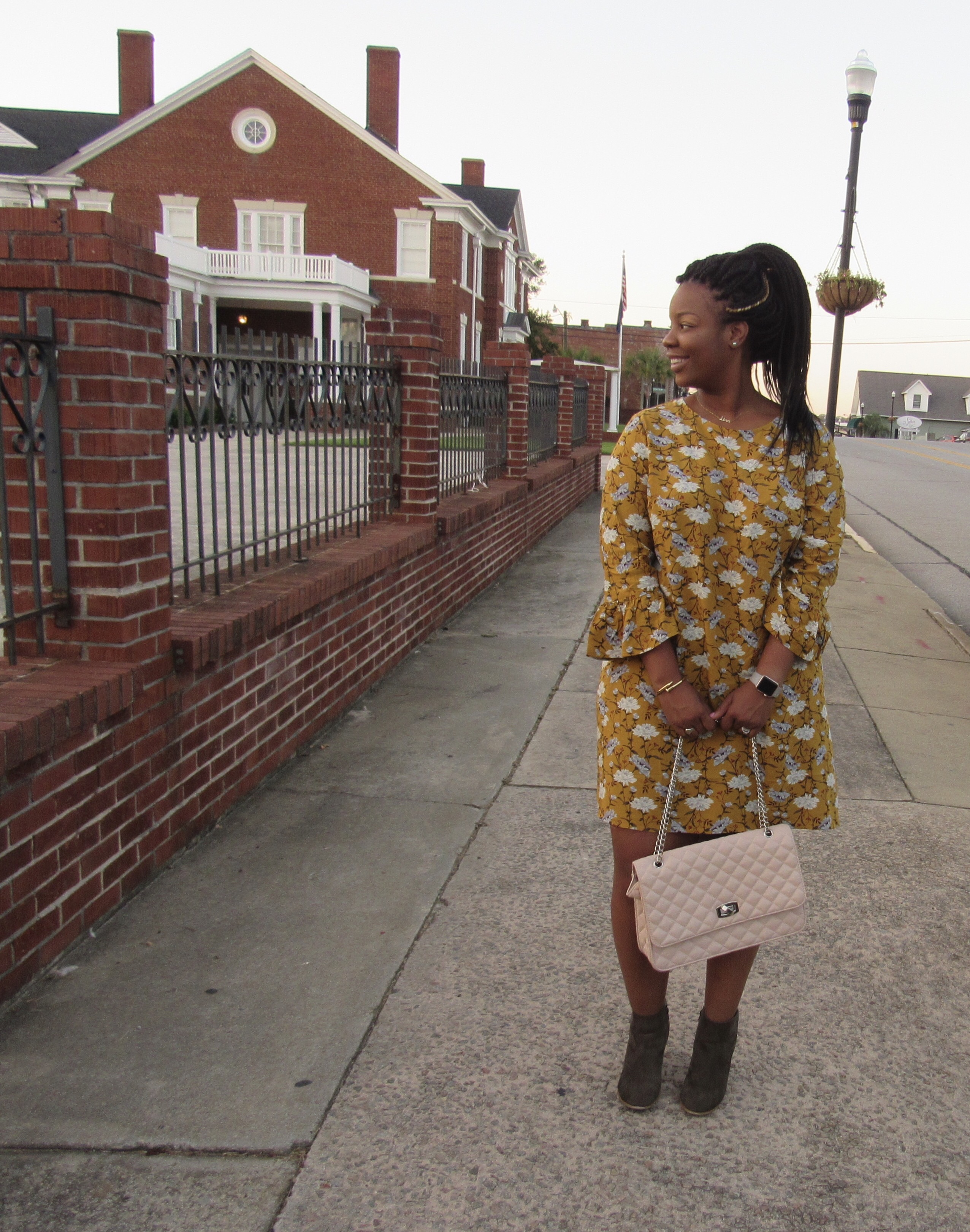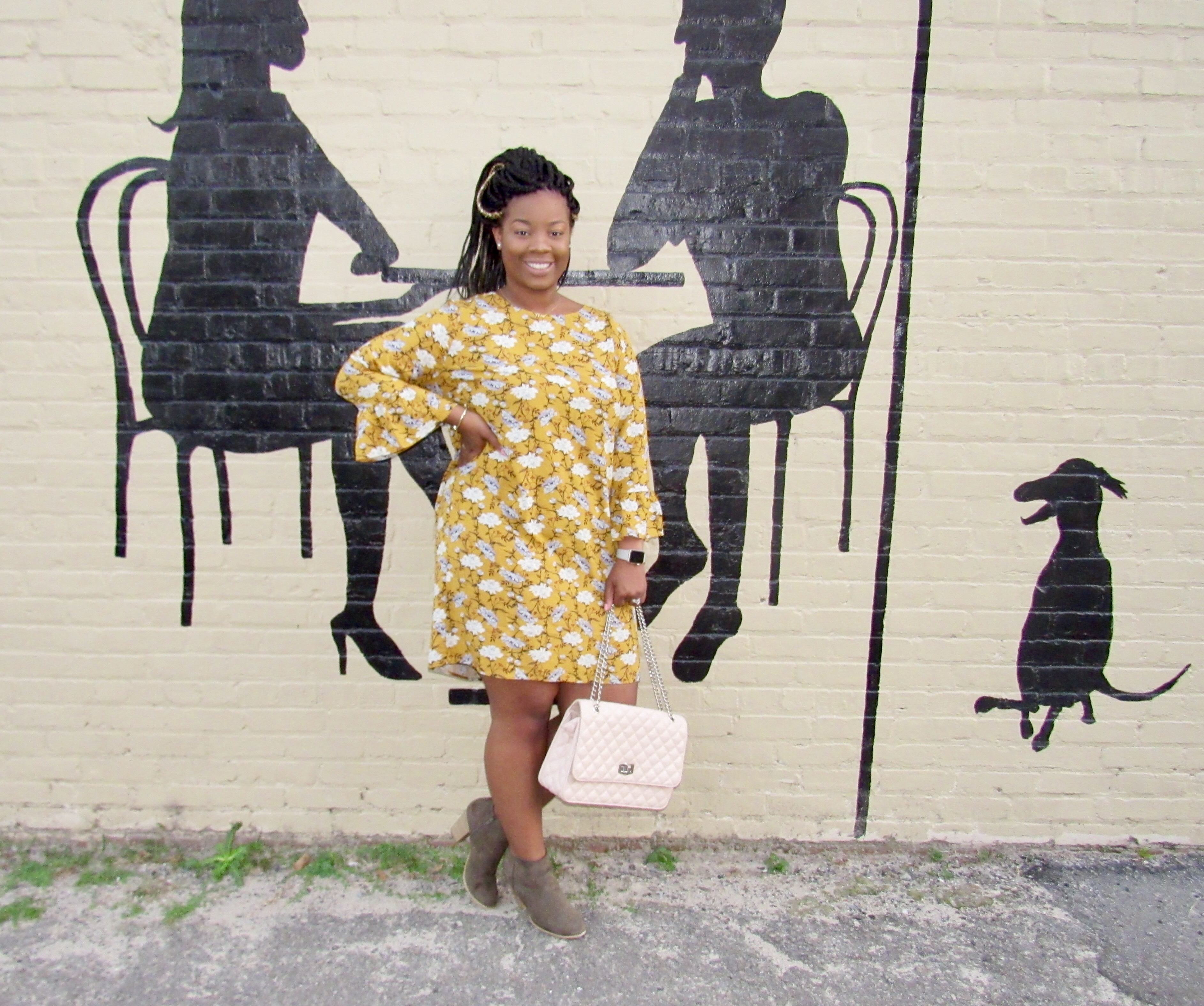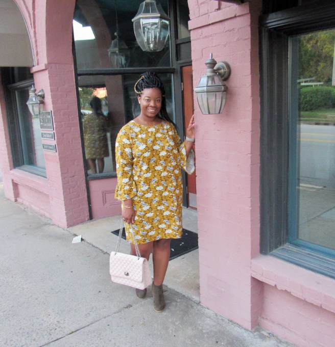 This outfit was put together effortlessly. This Old Navy Ruffled Sleeve Shift dress is so comfortable. It doesn’t have that weird lining attached inside that most dresses have. This is a huge plus for me. Usually those tend to cling to my hips and I’m constantly having to pull and tug. It’s an appropriate length, so you can wear this to work or out for an evening on the town.