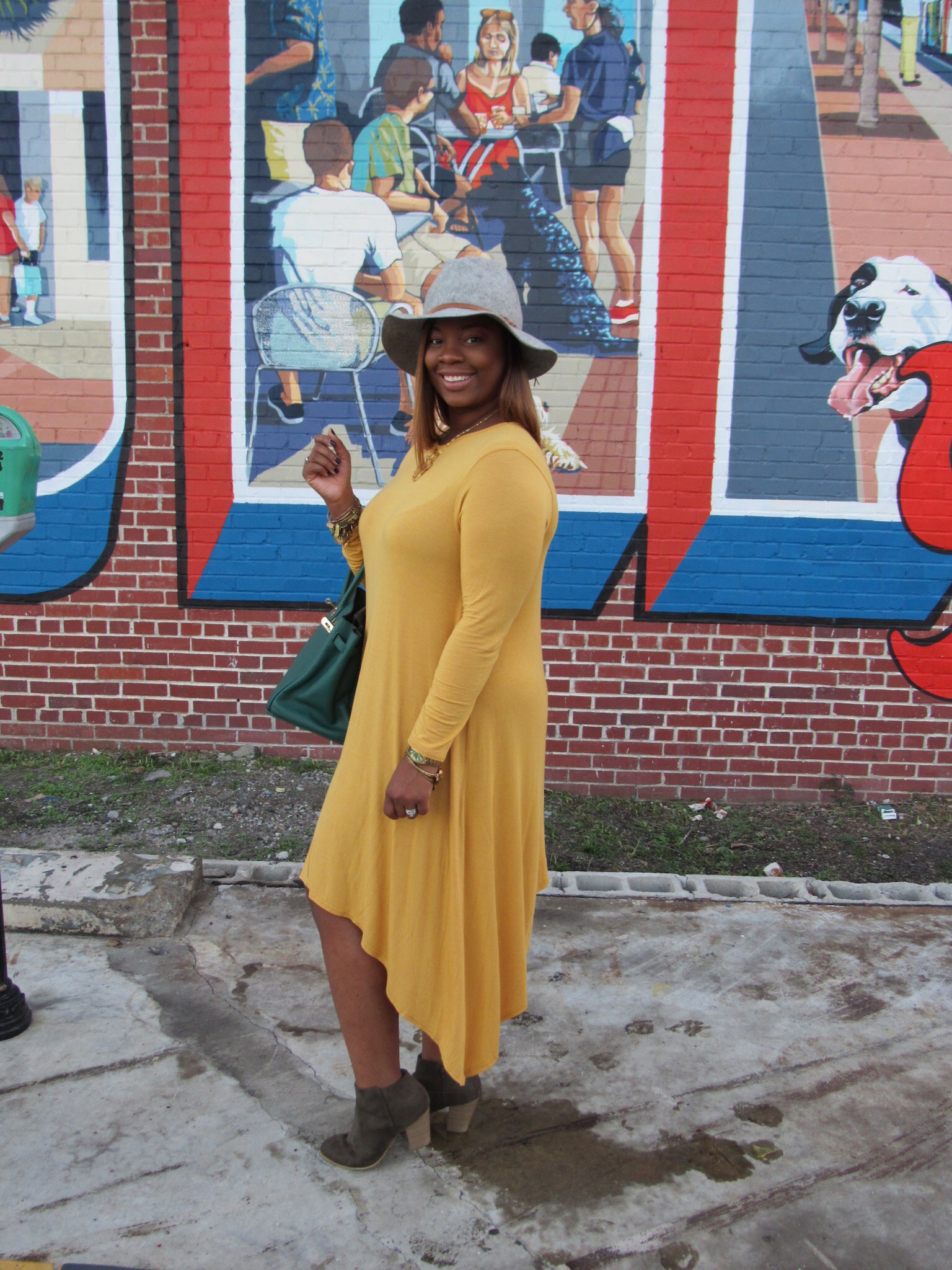 I hope that you enjoyed my fall looks and my mini spill on how to wear different shades of the same colors this season. Let’s not take any credit away from this amazing mural behind me courtesy of Chad Brady. I mean, how could I resist?