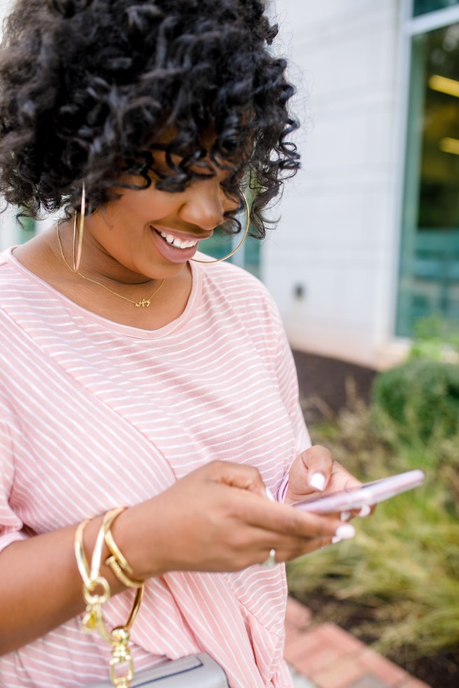 I was super excited to reach out to my past coworker and hometown acquaintance, Diana, when I saw that she was launching her own online boutique. I felt a bolt of excitement for her and this new business venture, so I immediately wanted to support her in any way that I could. I was able to touch bases with her and experience a “try on session!” This was the fun part for sure. Getting the full experience with Jessamine and James Clothing Company was so much fun!! Today’s feature is the Feeling Pretty Peachy Top