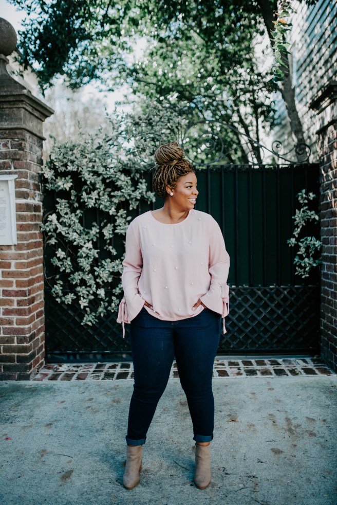 Let’s keep it real guys; who doesn’t love diamonds and pearls? Did you instantly begin singing the legendary song by Prince? I completely did! It’s always so fun to get cute in a dainty top that works for in and out of office settings. I was so excited to be in Charleston and have the chance to shoot this look with Nicole Mickle. She’s pretty bomb so be sure to check her out if you are ever in the area.