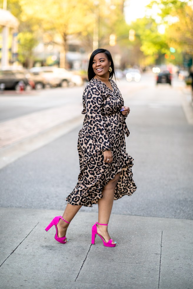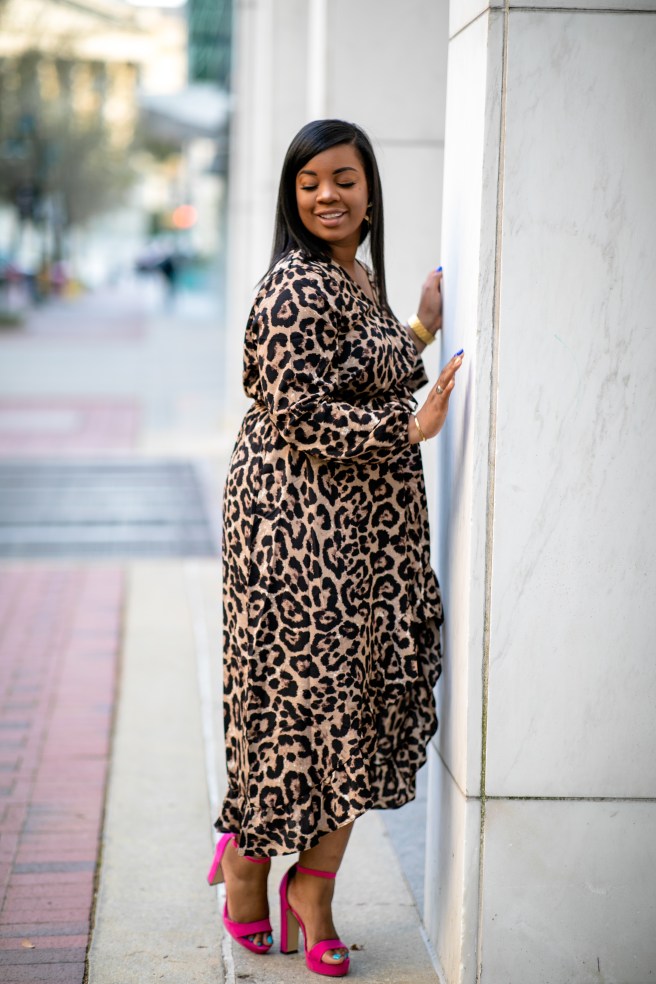 This look is such a fun style for date day or date night! I paired my bright, pink Boohoo platform heels with this to add a pop of color. Unfortunately, these are out of stock but I wanted to allow you the chance to see them up close. Here and here are more options for you to try! That’s the fun part of animal prints though. You can literally match any color with it! If you recall, I was playing with print mixing + matching! Would I recommend mixing this leopard print dress with another pattern or print…absolutely not! Allow this dress to do all of the talking for you! When you walk into the room you’ll OWN IT, instantly!