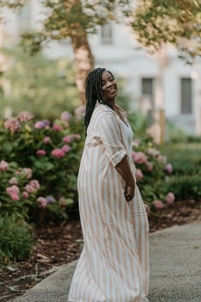I ordered this fly girl look and you can order yours too by clicking HERE! I would definitely recommend sizing down! I sized up because I would prefer something be ordered “too big” and have it altered versus being too small. The length is very long and that’s a plus for me!