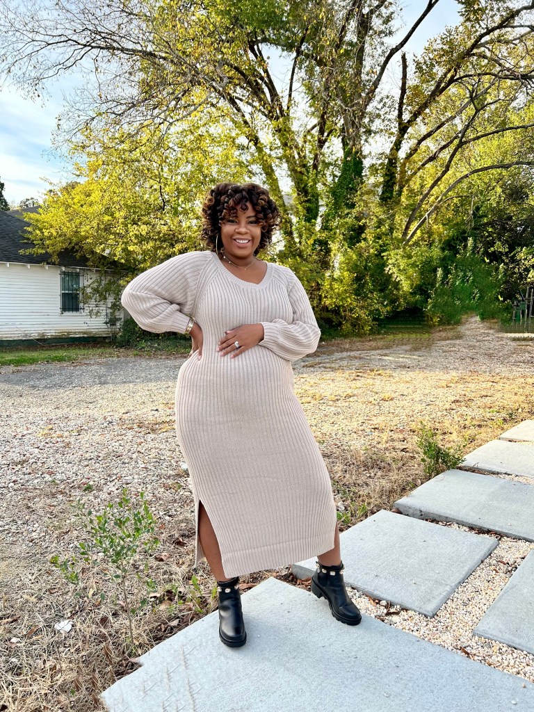 Who wants to know my latest, daily struggle? It’s finding shirts that are long enough to cover the top of my maternity jeans, finding comfy maternity jeans, and even finding dresses that are long enough and accommodating to my growing bump. Thankfully, I was able to partner which such a company that GETS MY STRUGGLE. PinkBlush Maternity has mastered the mommy to be, plus size niche and I am so excited to share three bomb items that I was able to snag. These items are the perfect styles that suit all of my maternity fashion woes on top of being available just in time for CYBER MONDAY! Today is one of their biggest sales of the year with up to 50% off across the site, too! You are not going to want to miss out on this.