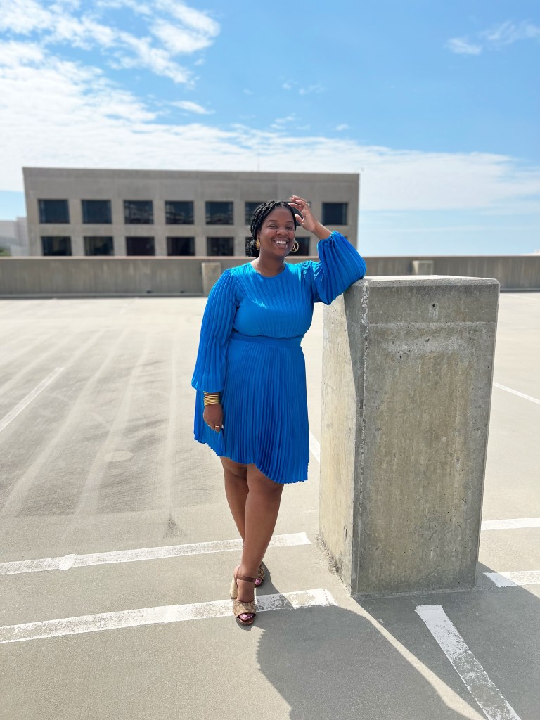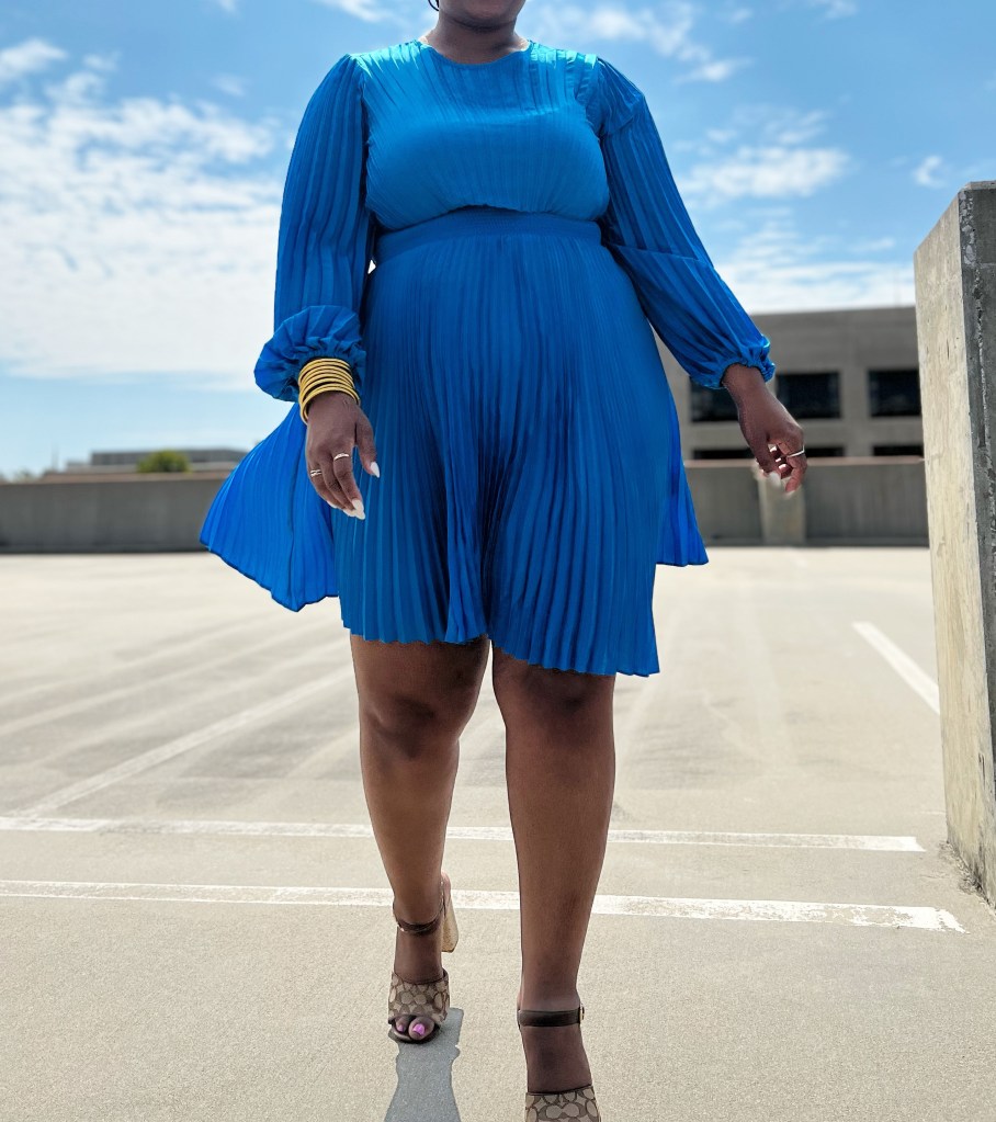 Snagged this Satin Long Sleeve Pleated Asymmetrical Hem Mini Dress from Express (online). I’m wearing a size XL. The length is decent and I’m 5’8 for reference.
